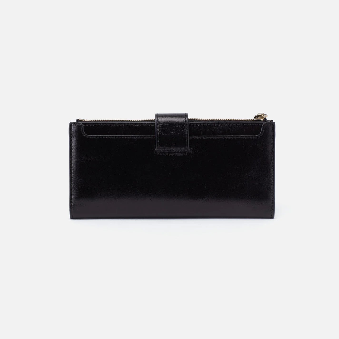 The Hobo Dunn Continental Wallet in Black is your everyday essential for effortless style and functionality. Designed as your daily companion, this wallet keeps you feeling put together while staying perfectly organized. Whether you're heading to the office or out for the weekend, the Dunn delivers the sophistication and practicality you need. Its sleek black finish pairs seamlessly with any outfit, making it the versatile accessory that works as hard as you do. Invest in a wallet that combines timeless design with reliable organization.