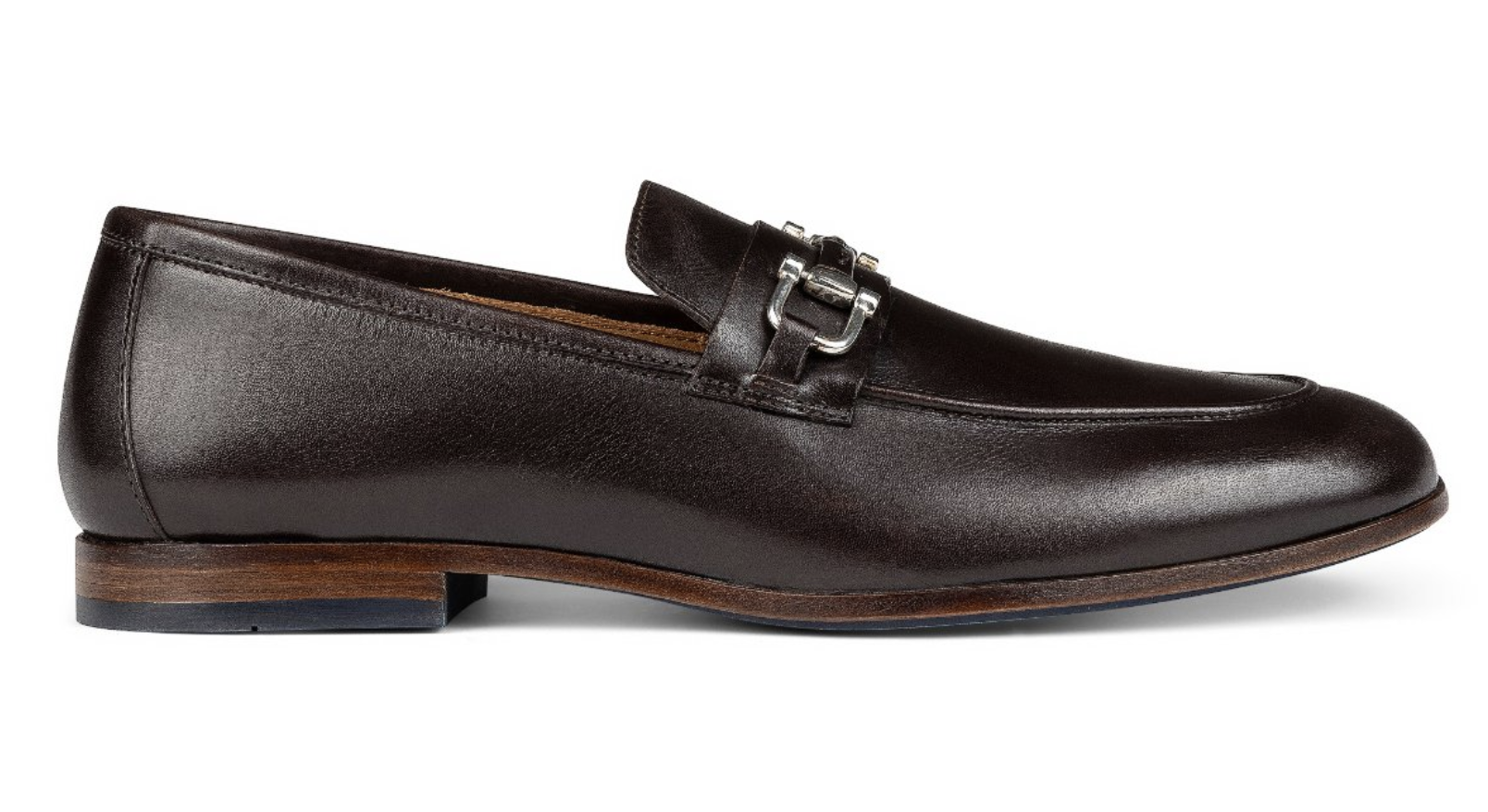 The Donald Pliner Men's Slade loafer combines timeless elegance with exceptional comfort. Crafted in Italy from supple calf leather and accented with a polished metal bit, this classic loafer features a memory foam padded insole that cushions your feet all day. Its durable rubber outsole ensures long-lasting wear, making it the perfect choice for both style and reliability. Step confidently with the Slade.