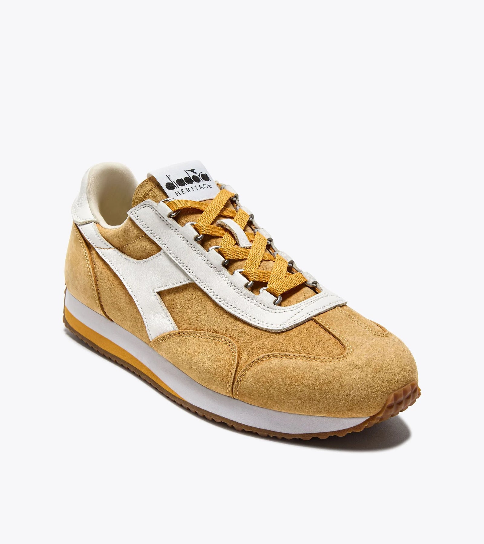 Diadora Women's Equipe '75 SW Yellow Straw blends vintage charm with modern comfort. Originally crafted for athletes, this low-profile sneaker features soft pigskin leather with a unique stone-wash finish, offering a stylish, well-worn look. Durable and refined, it effortlessly complements any outfit while providing lasting support, making it a timeless addition to your wardrobe since 1975.