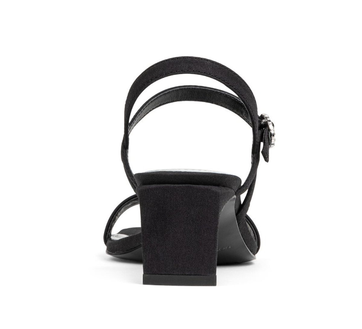Elevate your style with the Donald Pliner Women's Braziy Black Satin sandal. Featuring slender straps and exquisite detailing, this sandal offers a blend of playful elegance and sophistication. Its lightweight design ensures comfort throughout the day, making it the perfect choice for both casual outings and special occasions. Embrace timeless charm with every step.