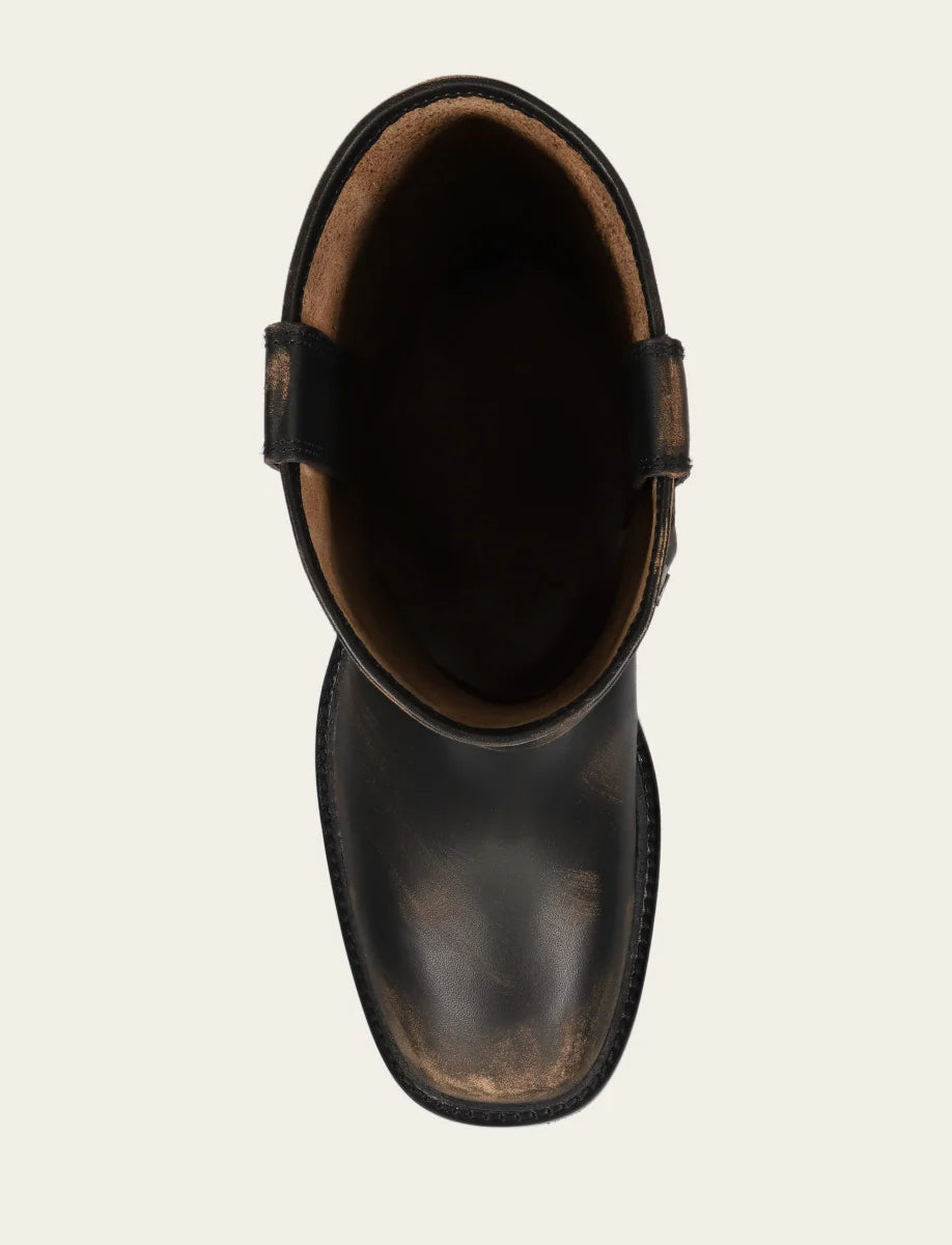 Step into timeless style with the Frye Women's Kate Harness boot in distressed black. This modern take on a classic features the brand's signature harness detail, rounded toe, and a comfortable 2-inch block heel that's made for all-day wear. The cushioned footbed and durable rubber outsole deliver support without sacrificing elegance. Whether paired with denim shorts or a flowing midi dress, these versatile boots bring an effortless edge to any outfit while honoring Frye's legendary craftsmanship.