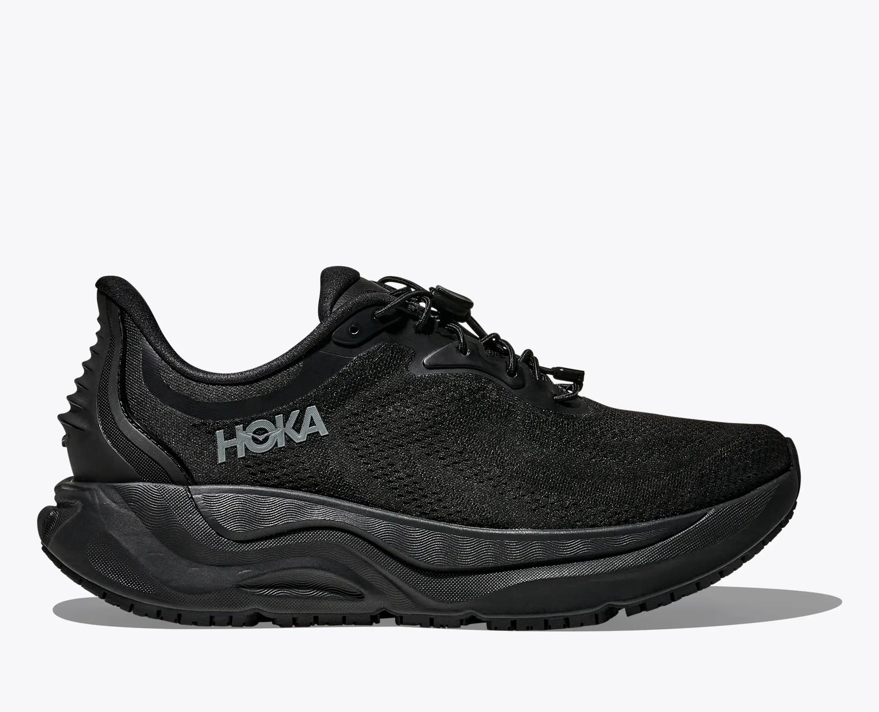 The Hoka Women's Arahi SR Black Black combines professional-grade slip resistance with everyday comfort. Engineered with a vented mesh upper and reinforced H-Frame™ stability system, this shoe delivers reliable traction on demanding job sites while maintaining the smooth, responsive ride you expect from Hoka. Water-repellent coating shields against splashes, while the innovative flex heel springs back effortlessly for quick on-and-off convenience. Whether you're clocking hours on your feet or transitioning between work and life, the Arahi SR keeps you supported, protected, and moving forward.