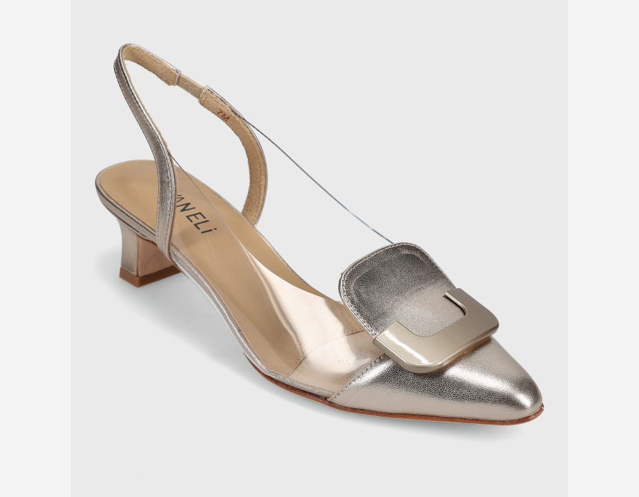 Step out in style with Vaneli's Tamira pump! This elegant slingback features a sleek illusion point-toe design and a patent cap and vamp ornament for a touch of sophistication. With a comfortable back strap and padded insole, you can strut in confidence on the 1.75 inch covered kitten heel. Elevate any outfit with this must-have shoe!